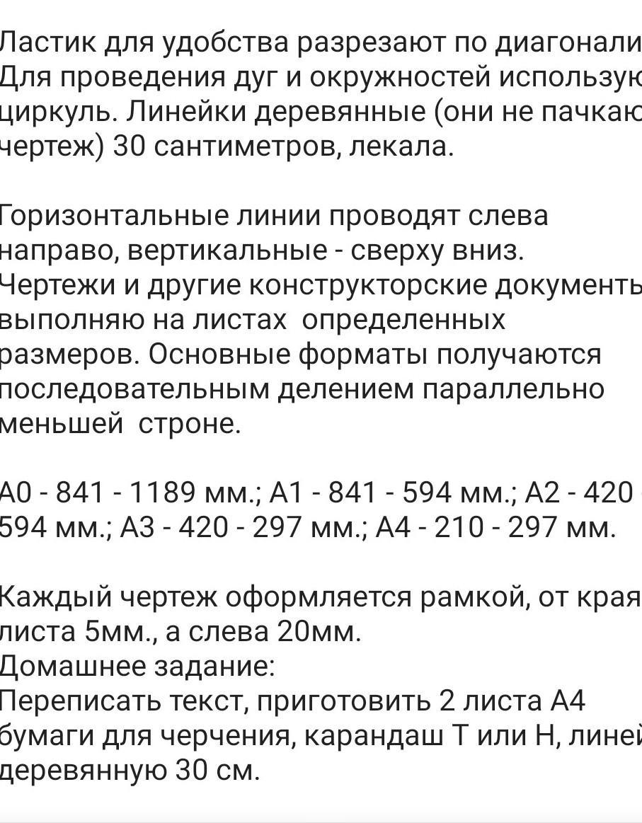 В правом нижнем углу располагают основную надпись чертежа. Она представляет совой для учебных чертежей прямоугольник со строчками и столбцами, как показано в учебнике Ботвинникова "Черчение".