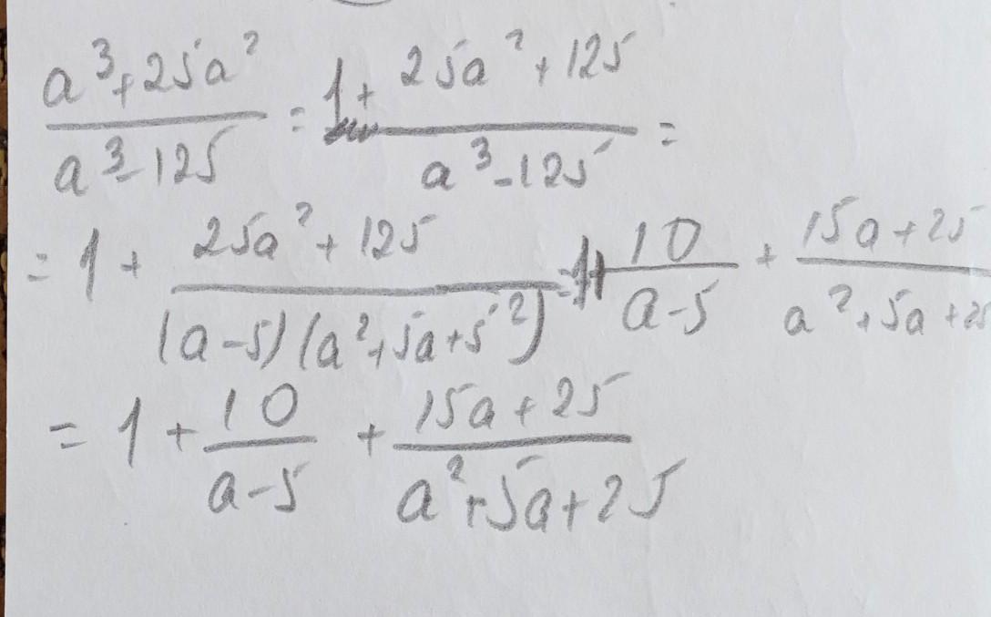 1+(10/a-5+15a)+(25/a²+5a+25)