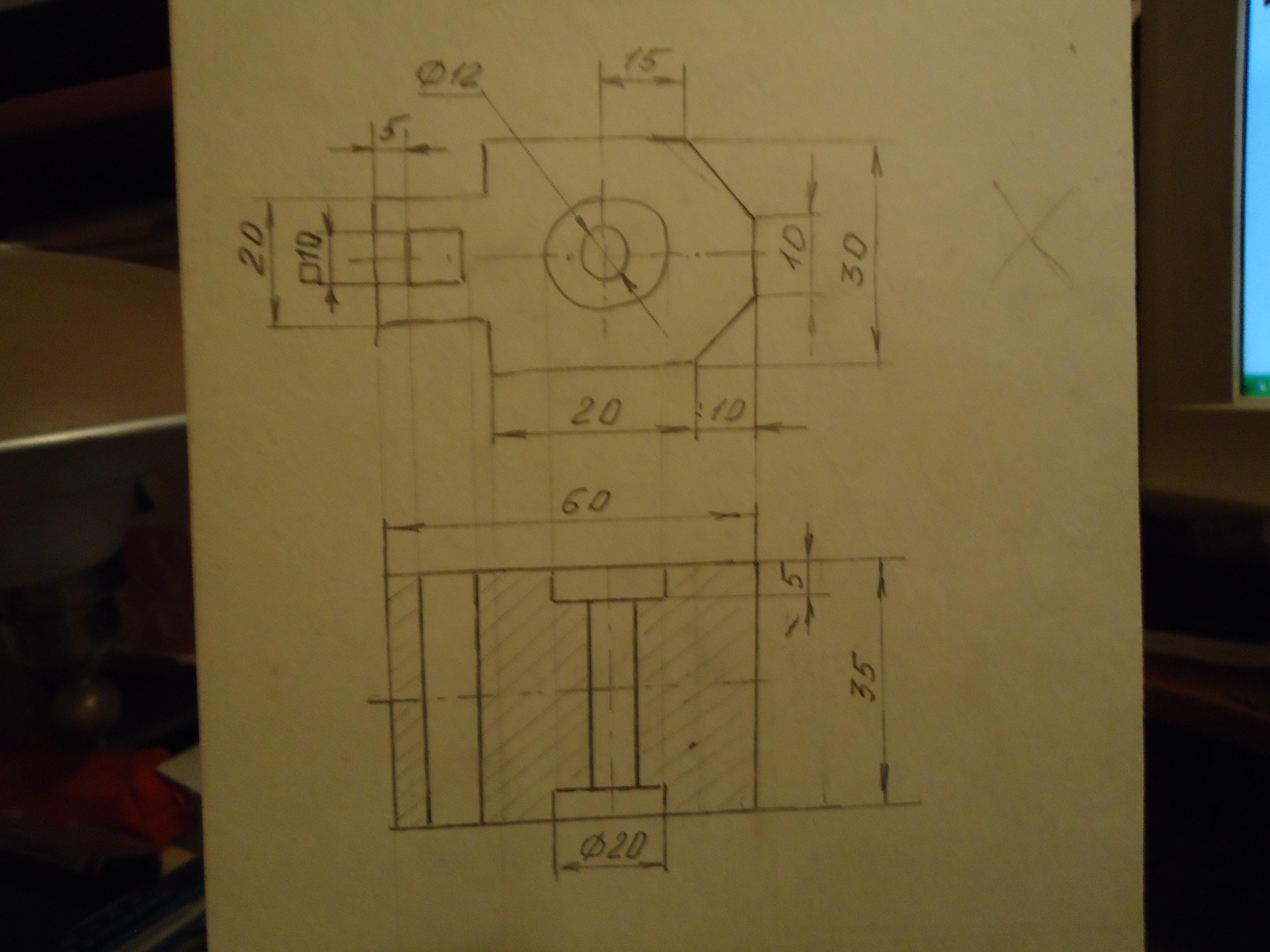 По первому заданию я показала чертёж без разреза и с горизонтальным разрезом. Проставила на чертеже размеры.