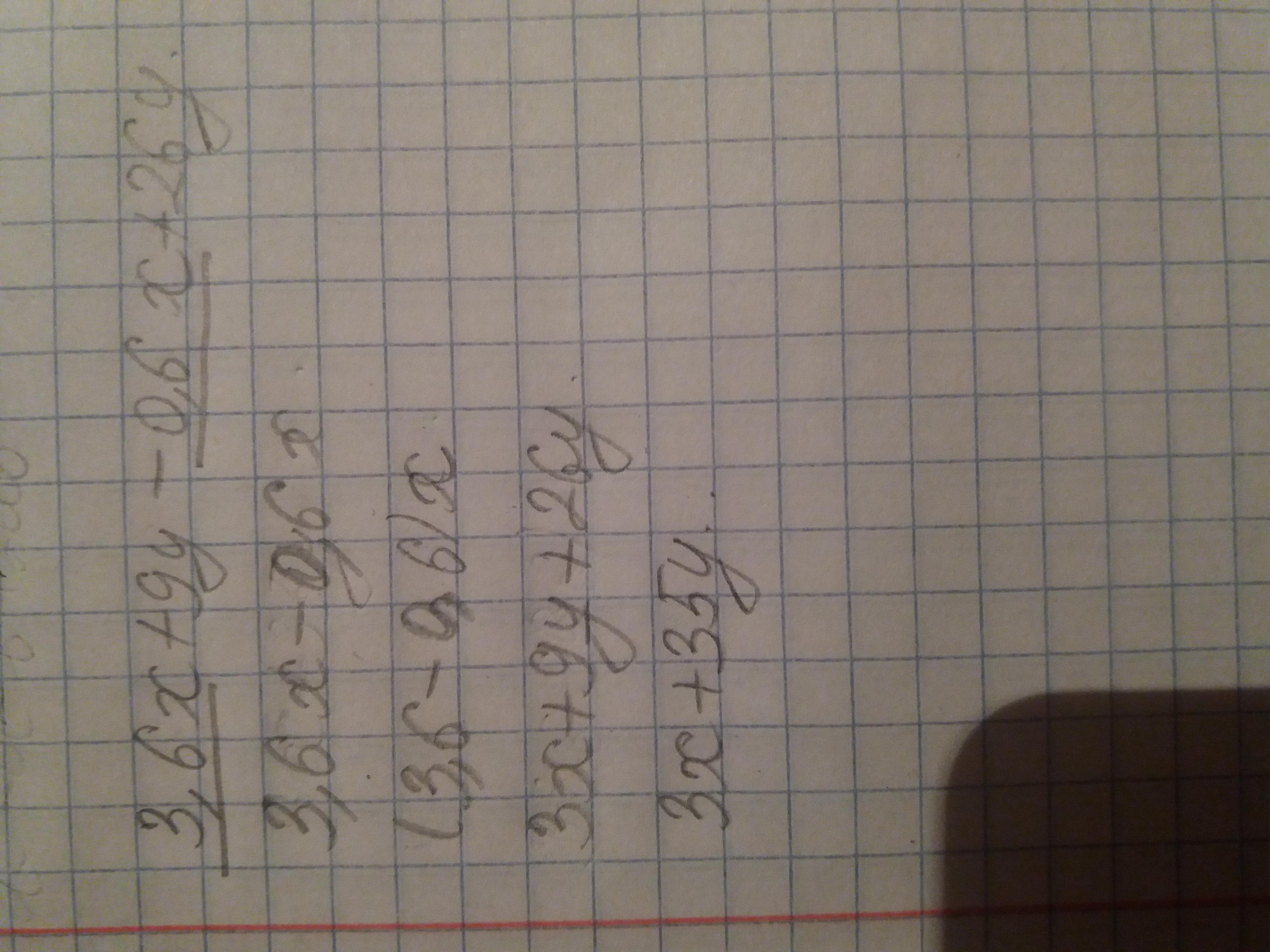 3,6x + 9y - 0,6x + 26y = 3,6x-0,6+9y+26y = 3x+35y
