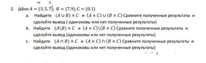 (A x C) U (B x C) = {(3,0);(5,0);(7,0);(3,1);(5,1);(7,1);(9,0);(9,1)}