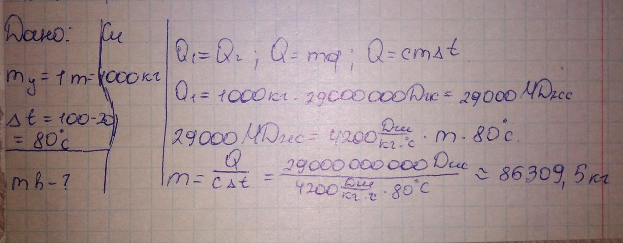 Какое количество теплоты выделиться при полном сгорании 1 и каменного угля? Воду какой массы можно нагреть от 20 градус цельсия до 100 градусов Цельсия с этим количеством теплоты?