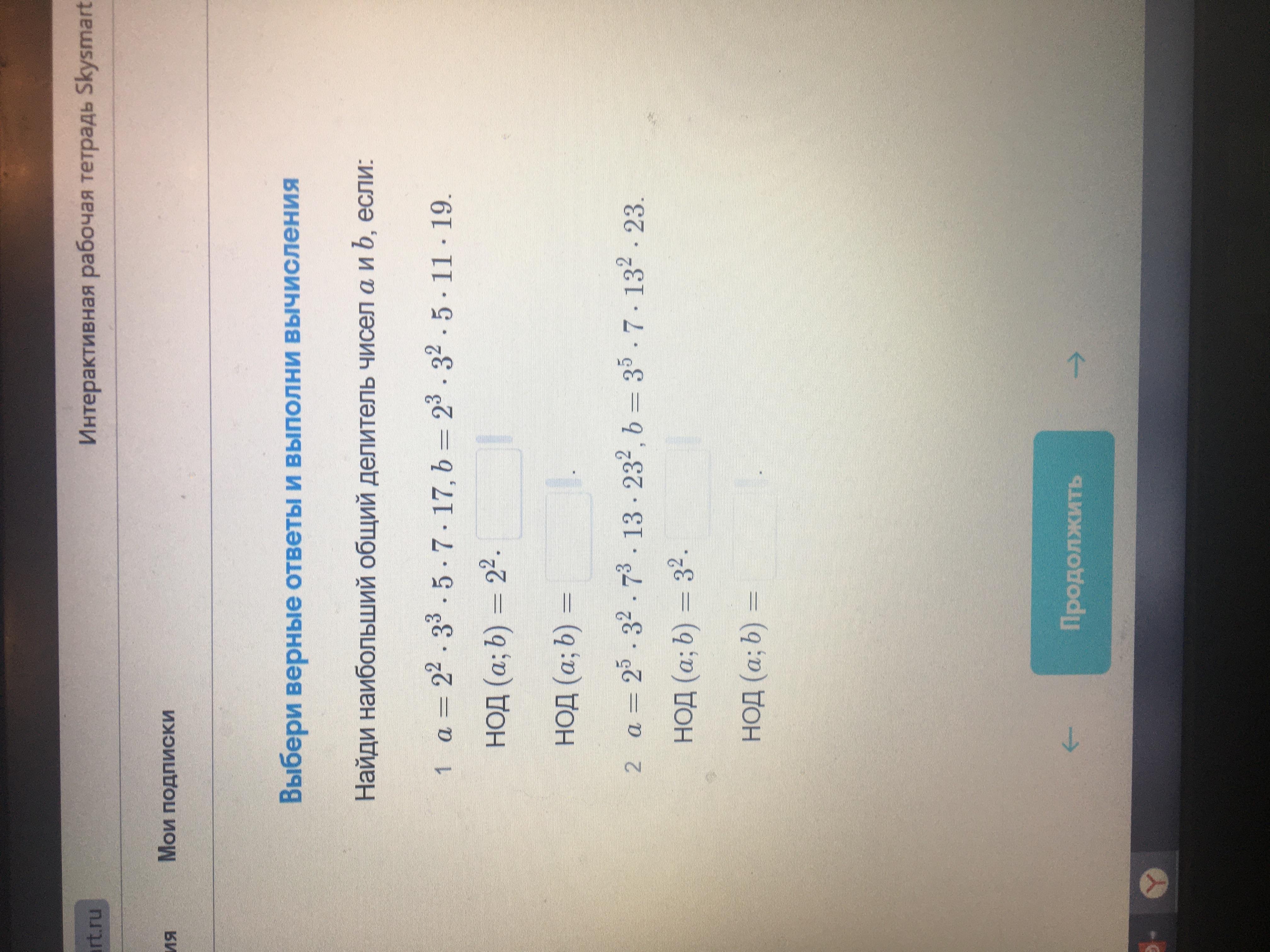 НОД - это Наибольший Общий Делитель. Для его нахождения нужно разложить числа на множители и перемножить те, что есть в том и другом числе.