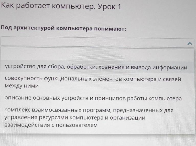 Архитектура компьютера - структура вычислительной машины, определяющая проведение обработки информации и включающая методы преобразования информации в данные и принципы взаимодействия технических средств и программного обеспечения