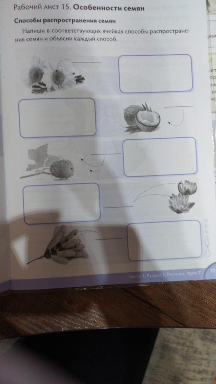 Напиши в соответствующих ячейках способы распространения семян и объясни каждый способ