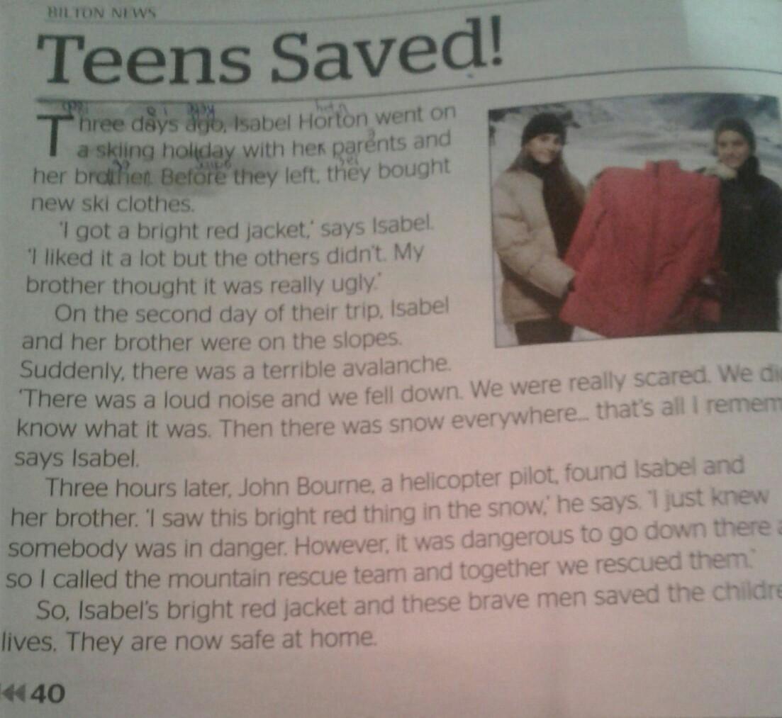 5.The________ and Isabel's bright red jacket saved the children.