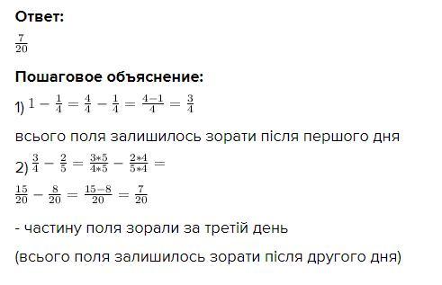 За один день зорали 1/4 усього поля, за другий — 2/5, а за третій — решту. Яку