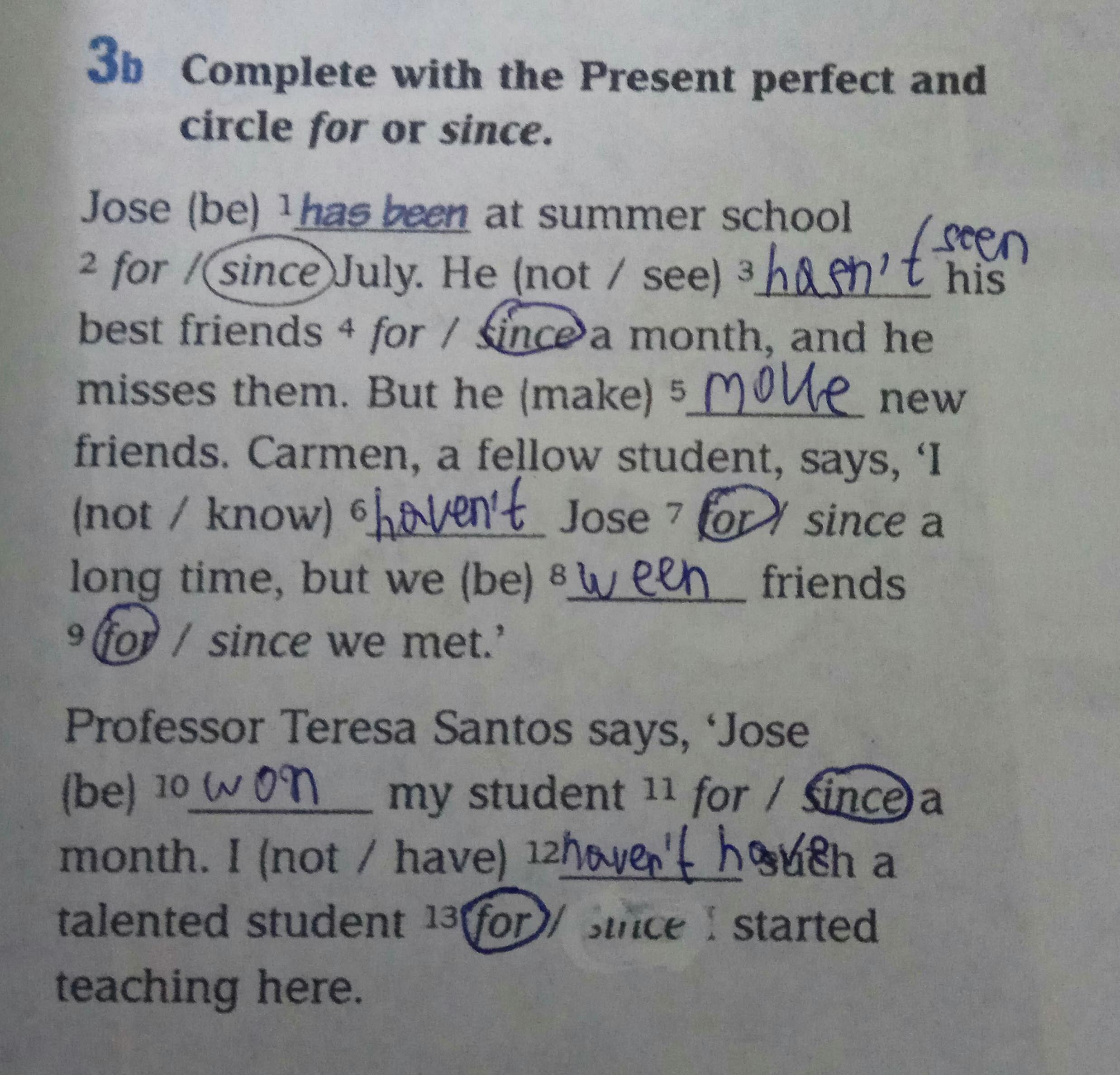 hasn’t seen, for, has made , haven’t known, for, have been, since, has been, for, haven’t had, since