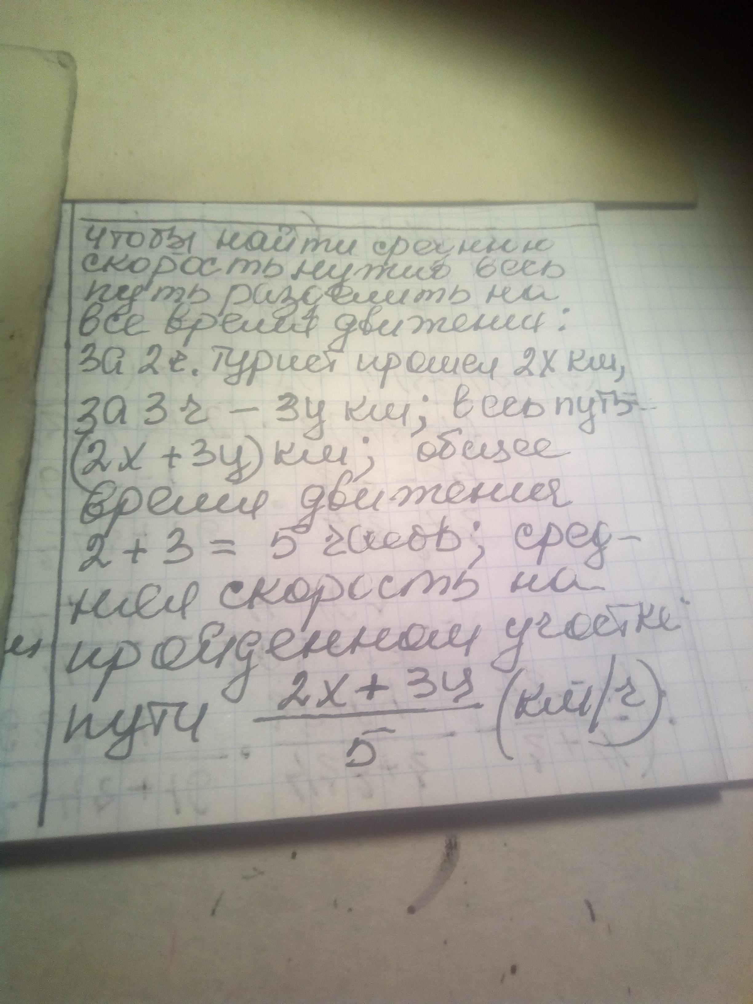 Турист Шел 2 часа со скоростью x км ч и 3 часа со скоростью y км ч. Определите среднюю скорость туриста на пройденном участке пути