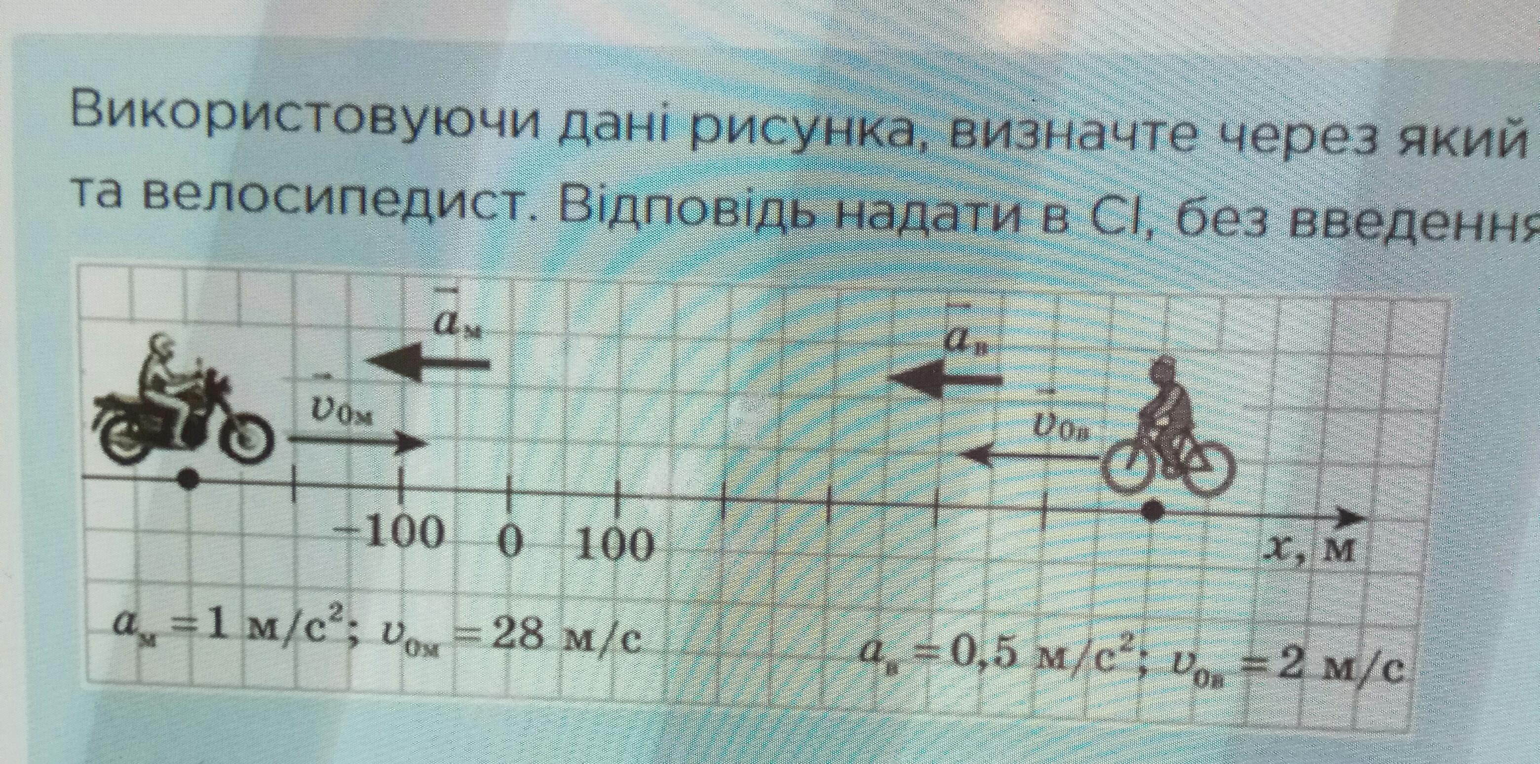 Физика 10 класс. Кинематика Через какое время встретятся мотоциклист и велосипедист?