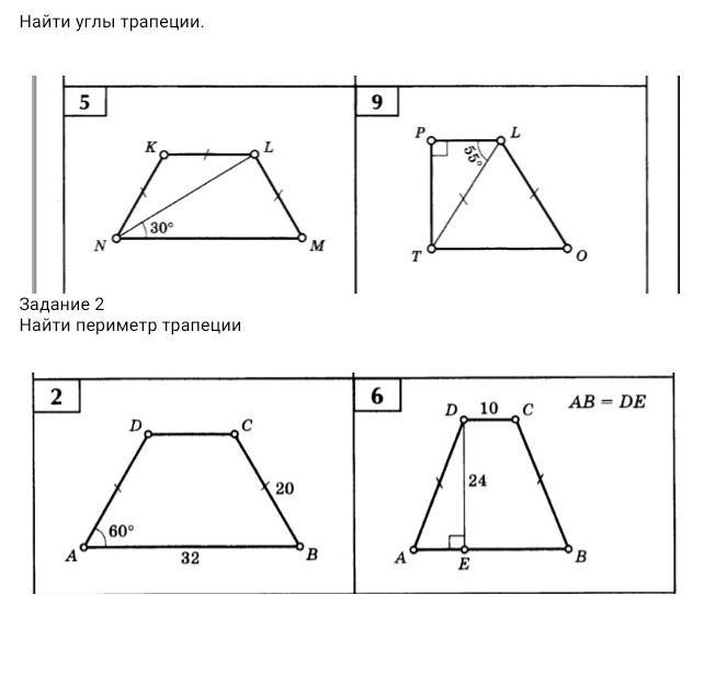 5. Угол L равен 30° т.к соответственные, т.к проведена диагональ, углы делятся на пополам => трап. NKML равна 360° так как сумма выпуклого 4-х угольника равна 360° => 60+60= 360-120=240/2=120°