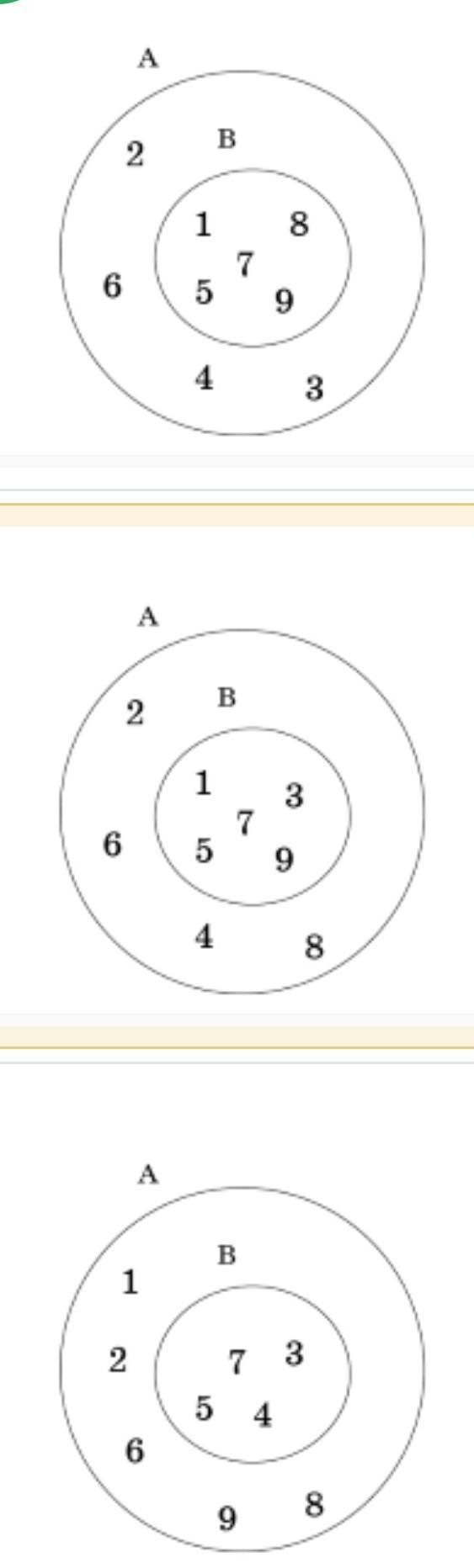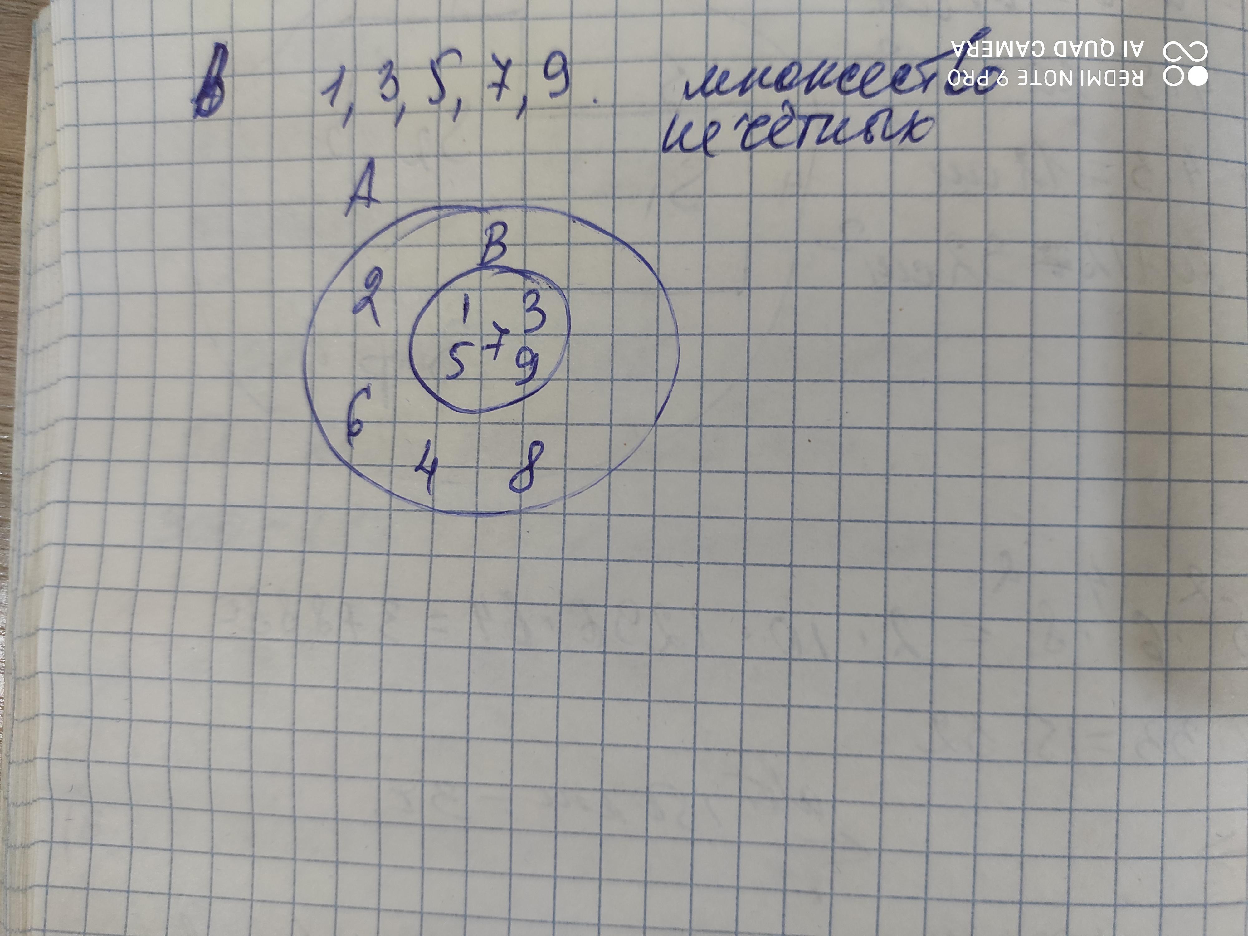 укажи правильно построенную диаграмму А={1,2,3,4,5,6,7,8,9}B- множество нечётных чисел
