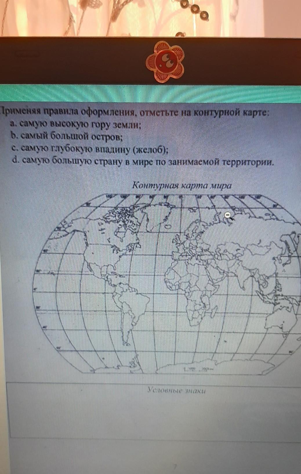 Применяя правила оформления, отметьте на контурной карте: