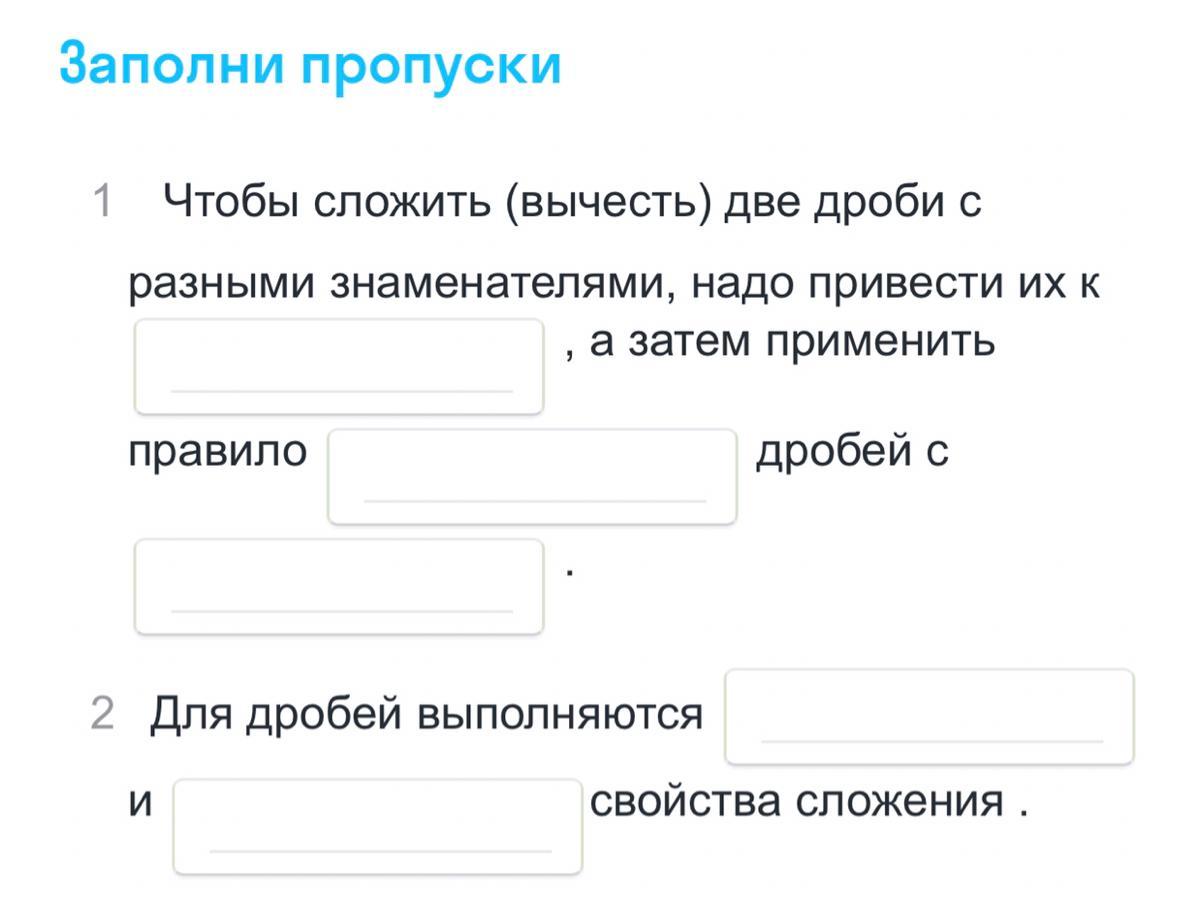 1)чтобы сложить (вычесть) две дроби с разными знаменателями надо привести их к общему знаменателю затем применить правело сложения (вычитания) дробей с равными знаменателями.2)для дробей выполняются переместительное и сочетательное свойства сложения