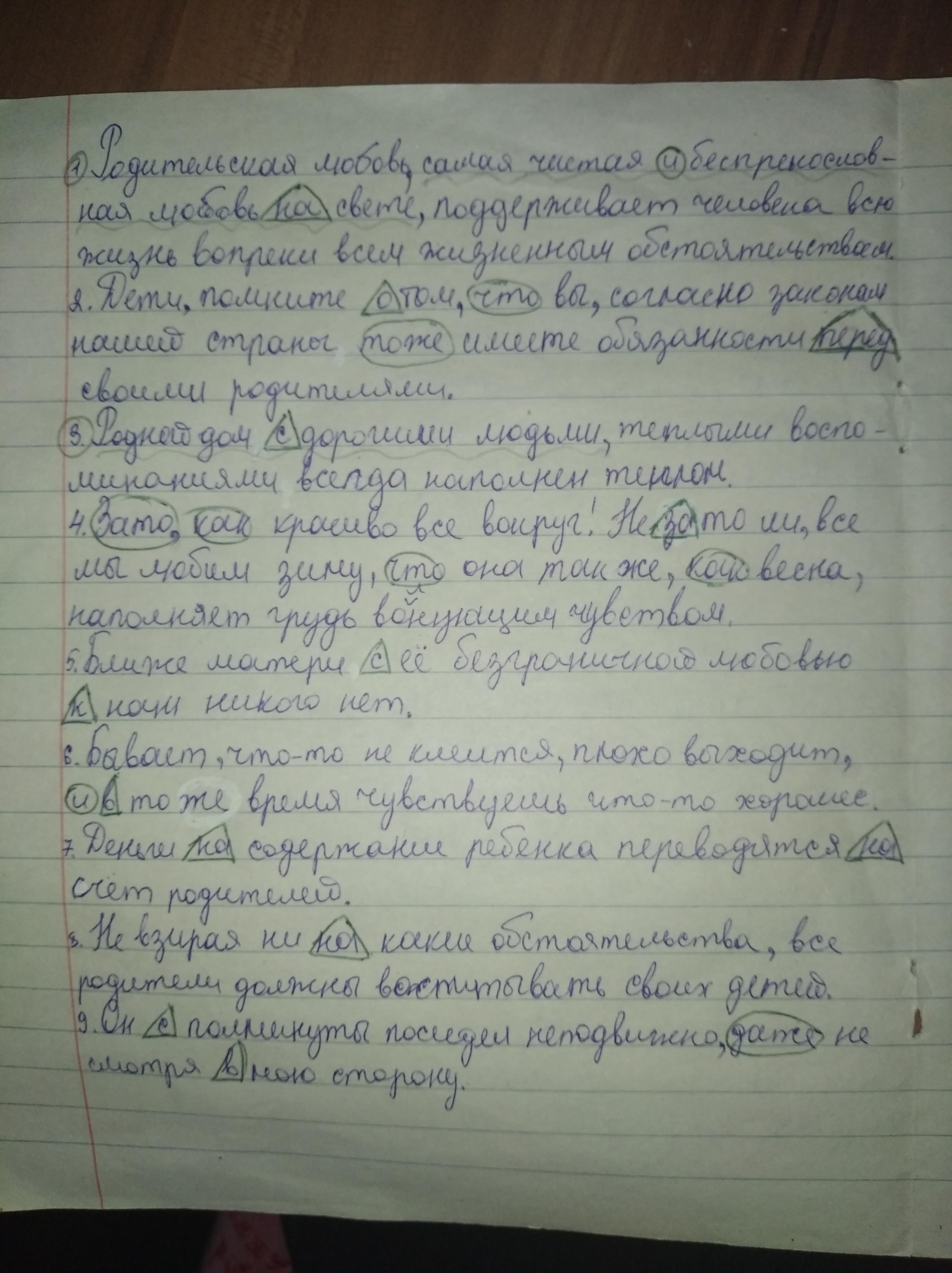 Задание 4. Спишите предложения, расставьте пропущенные знаки препинания, раскройте скобки (СЛИТНО или РАЗДЕЛЬНО), подчеркните обособленные члены предложения (всего 2). Выделите союзы (в круг) и предлоги (в треугольник).