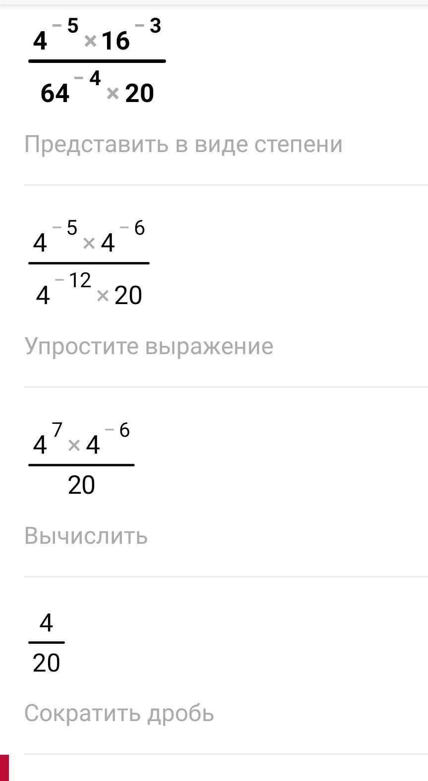 64 это представить нужно 4 в степени 3 и еще в степени -4.