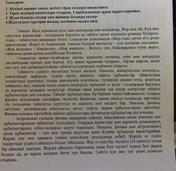 Тірек сөздер: табиғат, қоршаған орта,адам,жер,күн,Жер Ана.