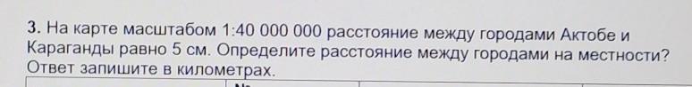 3. На карте масштабом 1:40 000 000 расстояние между городами Актобе и