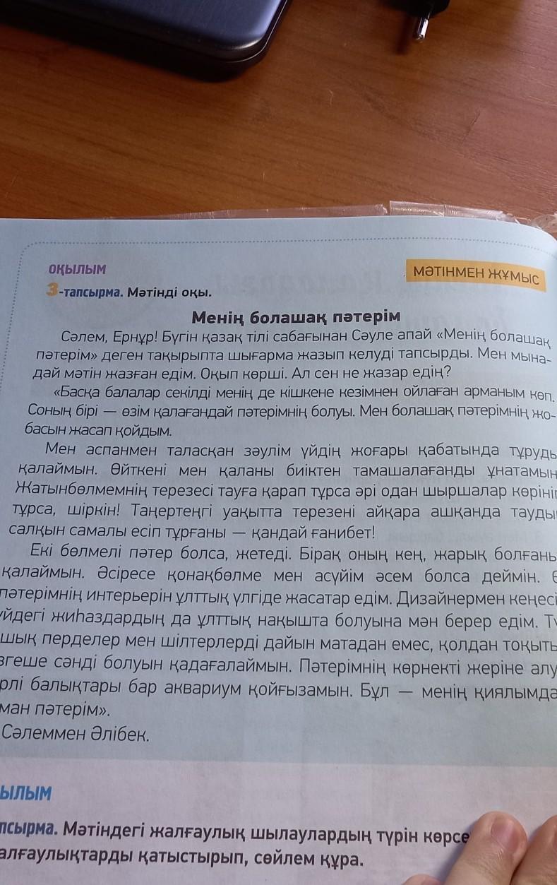 Мәтіндегі жалғаулық шылаулардың түрін көрсет.Осы жалғаулықтарды қатыстырып, сөйлем құра.