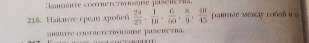 1/10 и 6/60. 8/9 и 40/45 равные дроби