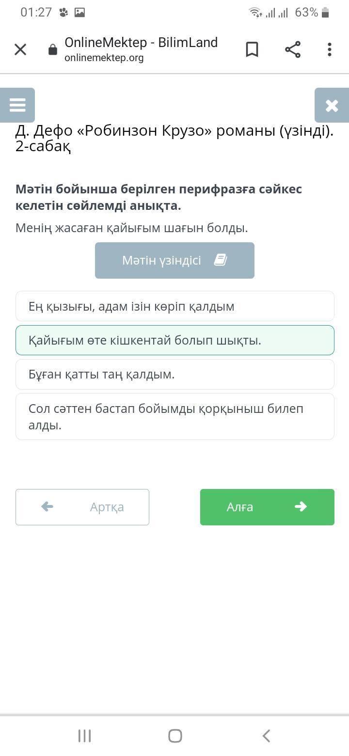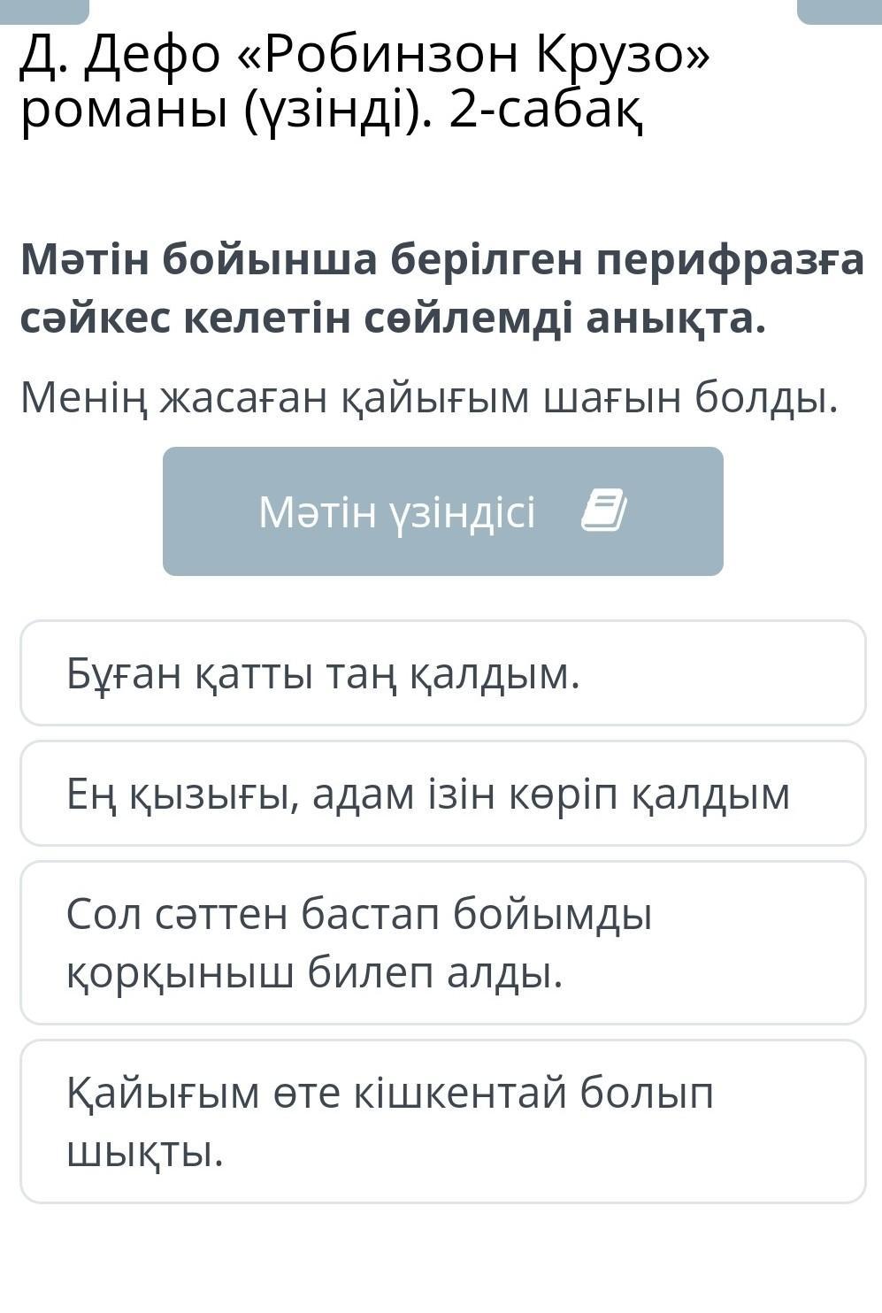 Мәтін бойынша берілген перифразға сәйкес келетін сөйлемді анықта.