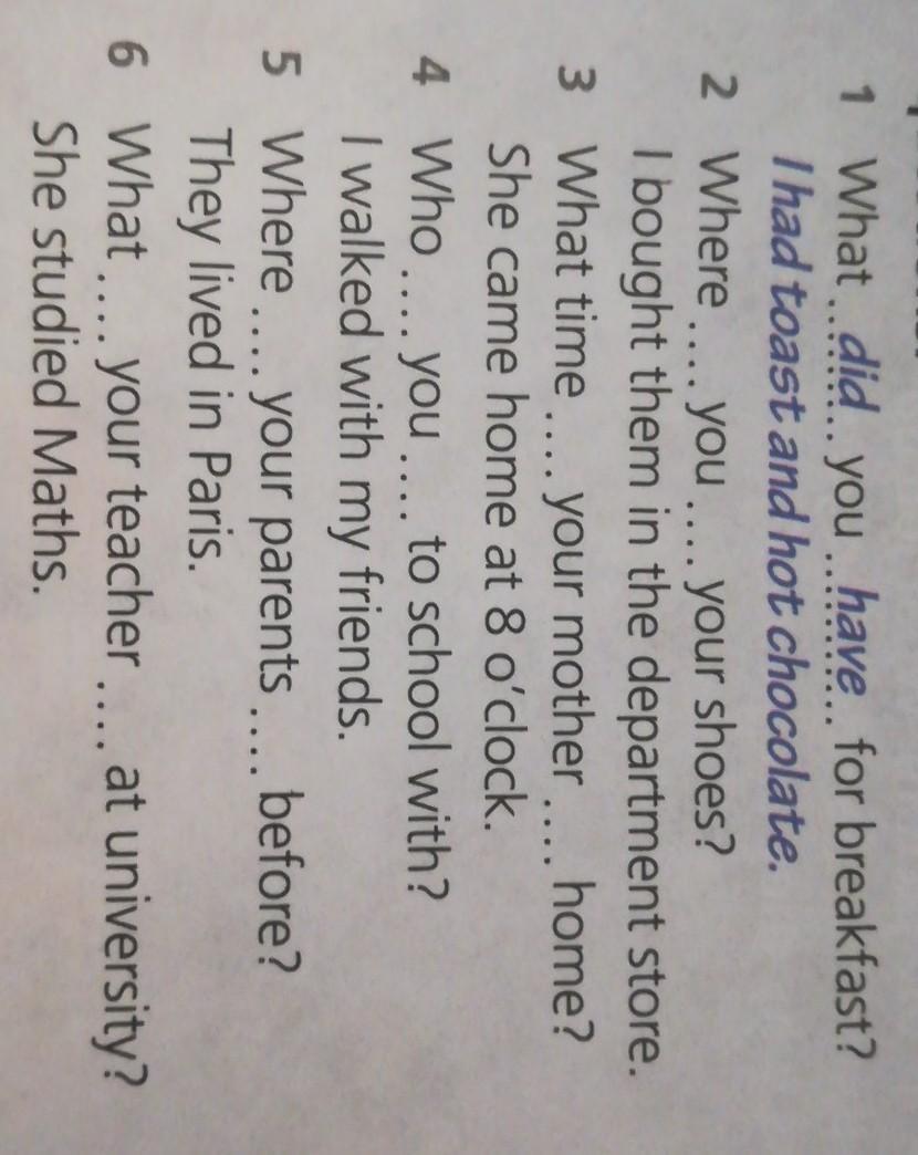 3)What time does your mother come home?