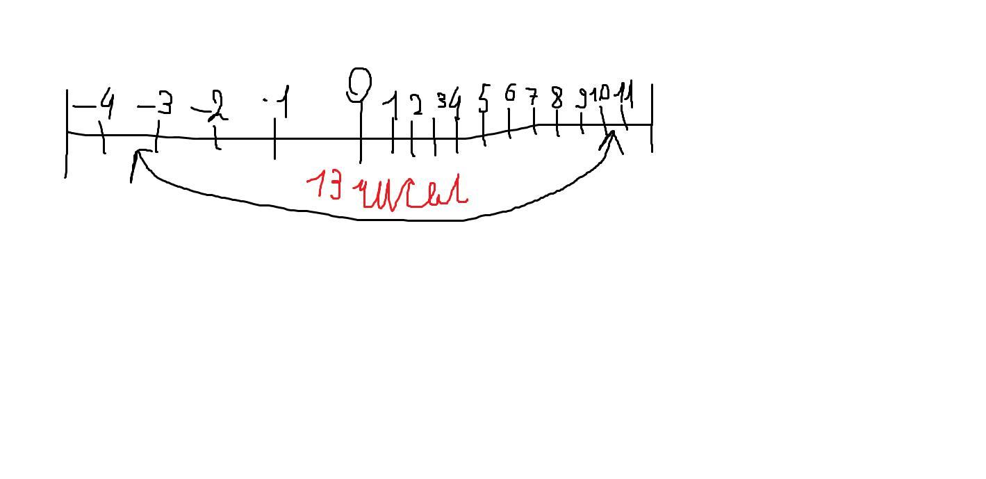 Т. к целые числа это 1 2 3 и. т .д поэтому числа между 11 и -4 это: 10 9 8 7 6 5 4 3 2 1 0 -1 -2 -3- тут 13 чисел