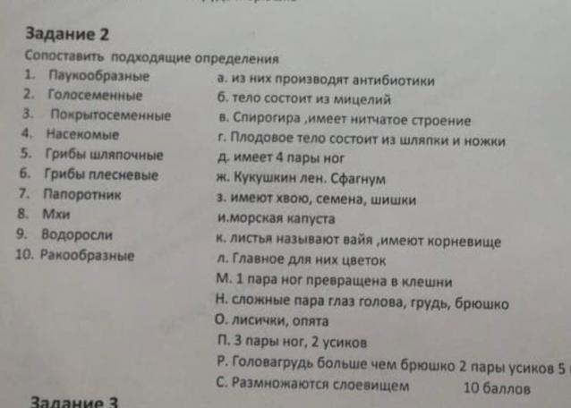 Объяснение:Паукообразные - д,р. Голосеменные - з. Покрытосеменные - и. Насекомые - н,п. Шляпочные - г,о. Плесневые -а,б. Папоротник - к. Мхи - ж. Водоросли - в,и,с. Ракообразные -м,р.