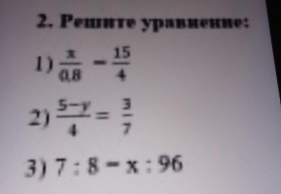 решите уравнения 1) х/0,8 =15/4 2)51 =у/4 3)7:8=х:96 не знаю там минус или равно но помогите пожалуйста