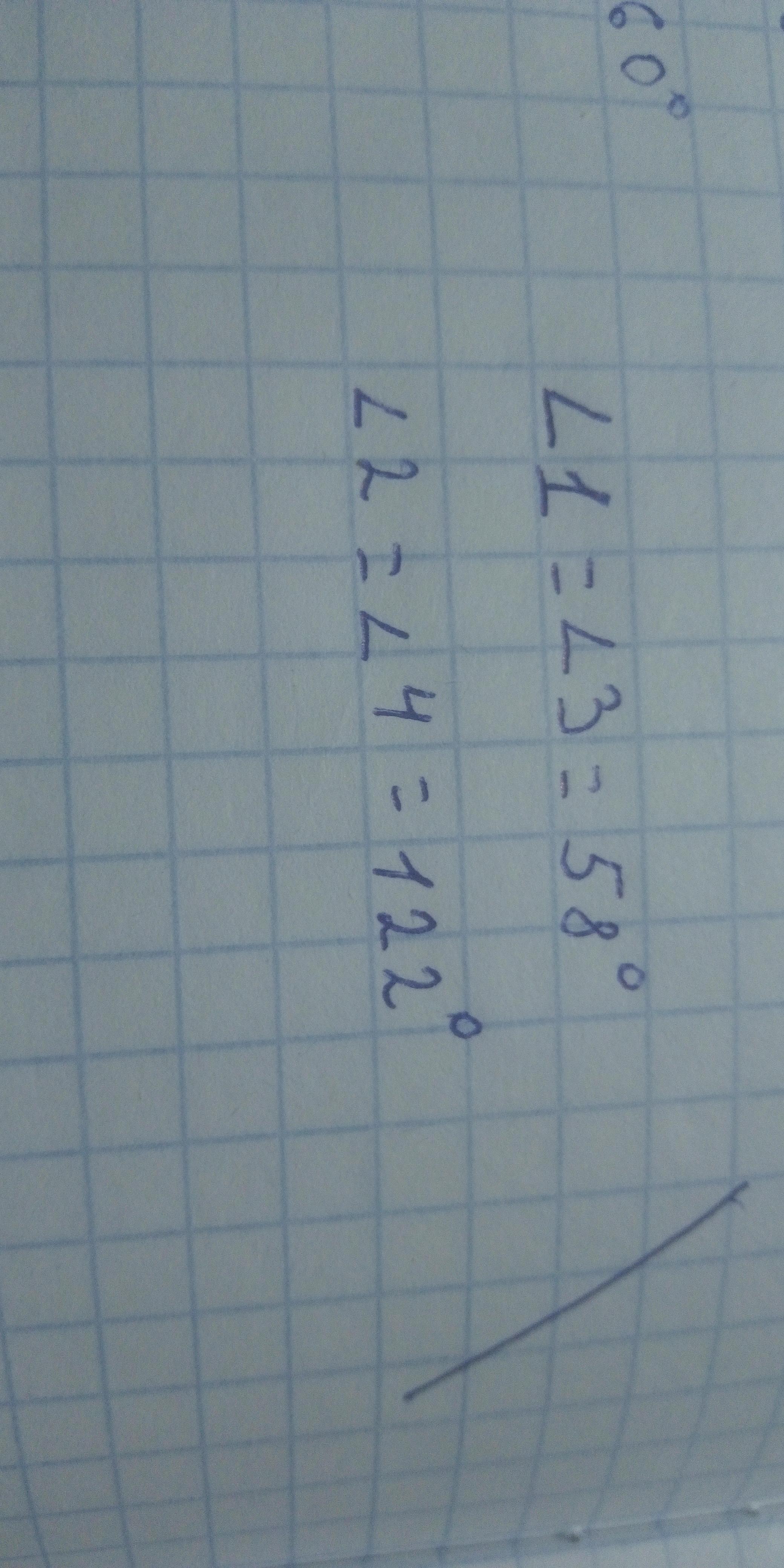 угол1=угол3 равны потому что это вертикальные углы, точно так же с угол2=угол4