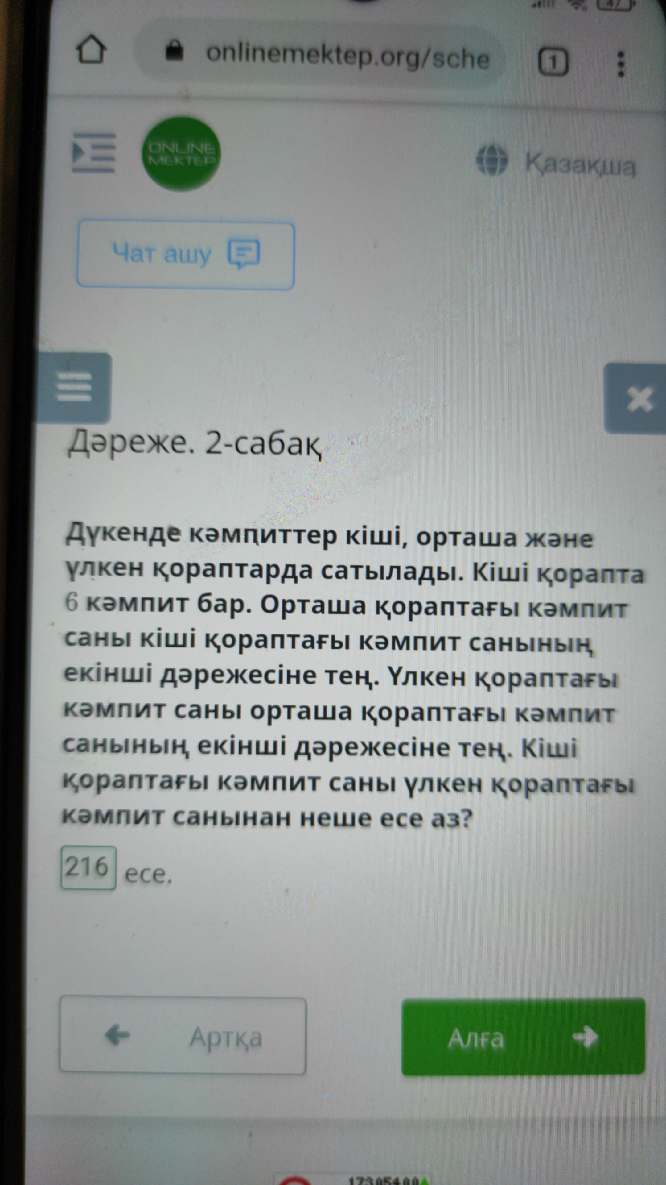 Жауабы: кішкентай қораптардың саны