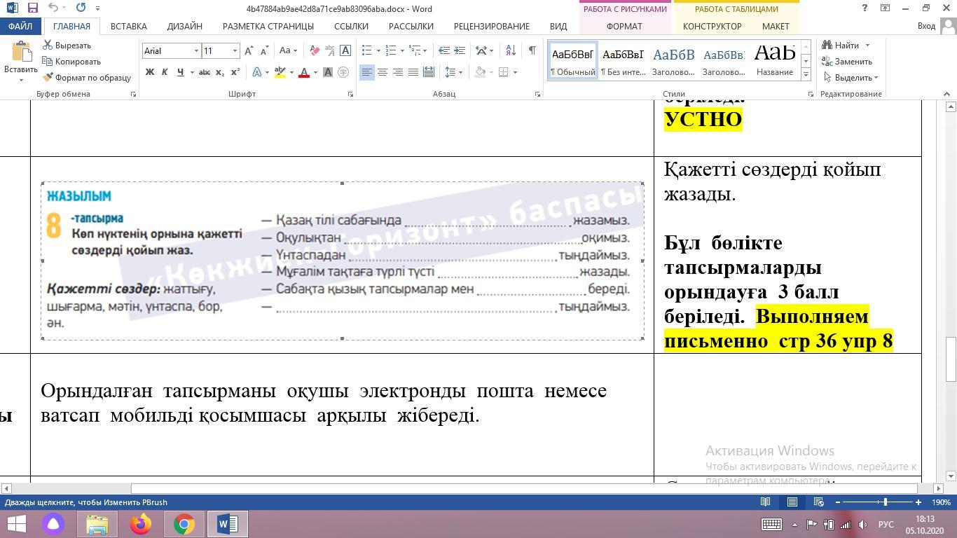 Бұл бөлікте тапсырмаларды орындауға 3 балл беріледі. Выполняем письменно стр 36 упр 8