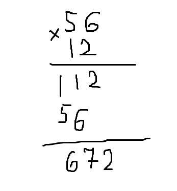 56х12=672 в столбик тоже самое напиши только в столбик (думаю ясно обьяснила)