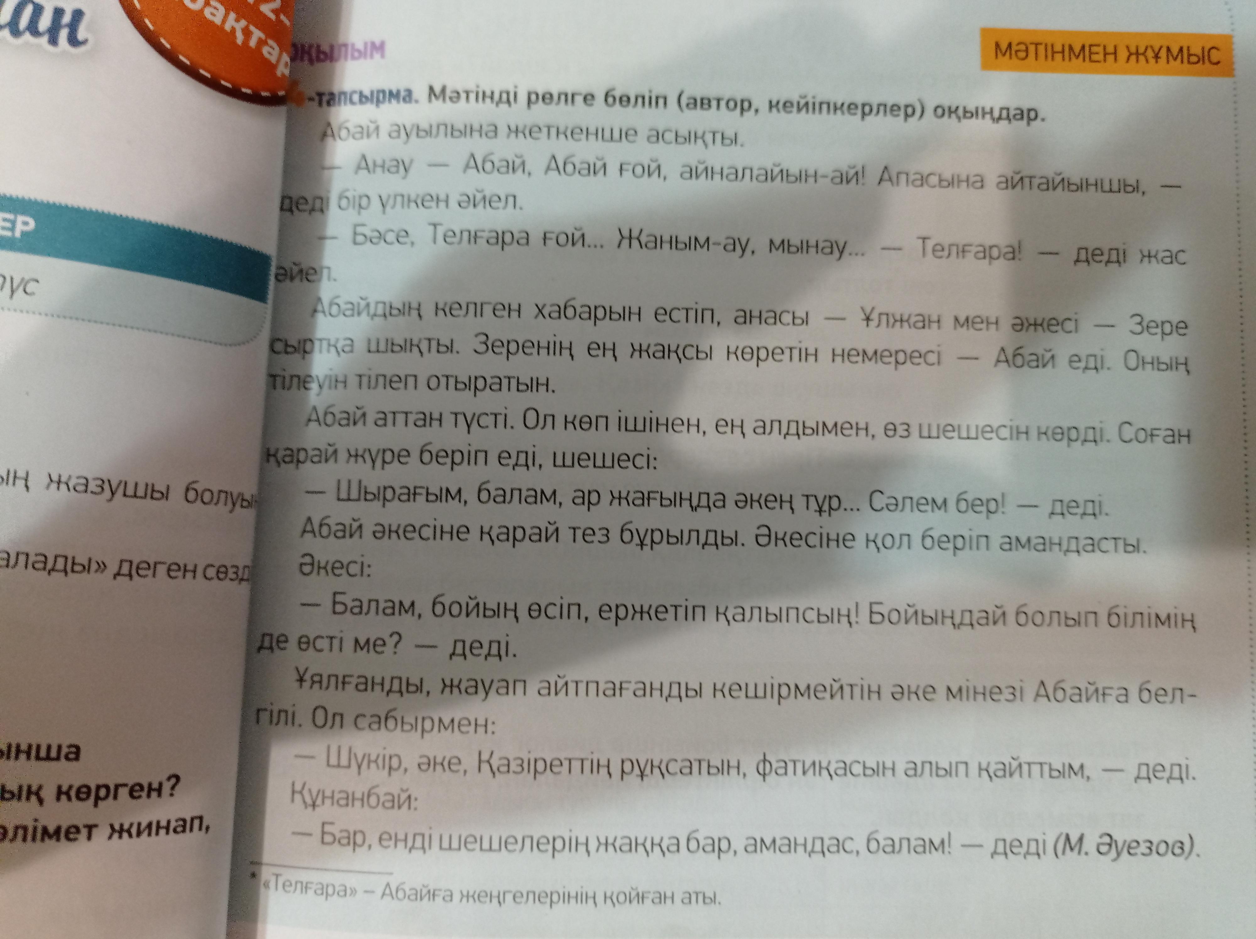 Мәтінді мазмұнда. Жаңа сөздер мен сөз әдебіне қатысты сөздерді теріп жаз. Мұғалімнің көмегімен олардың мағынасын түсін.