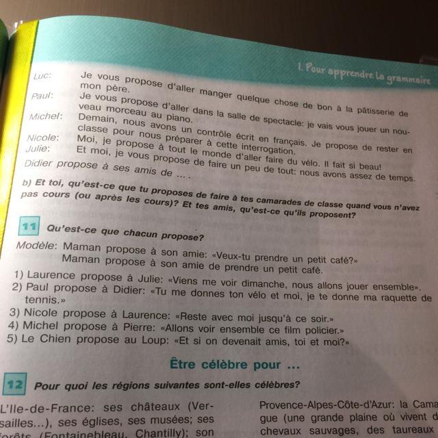 Moi je propose quand on a pas cours de aller se promener quelques part parce que après des heures de travailler ça va faire du bien au serveau