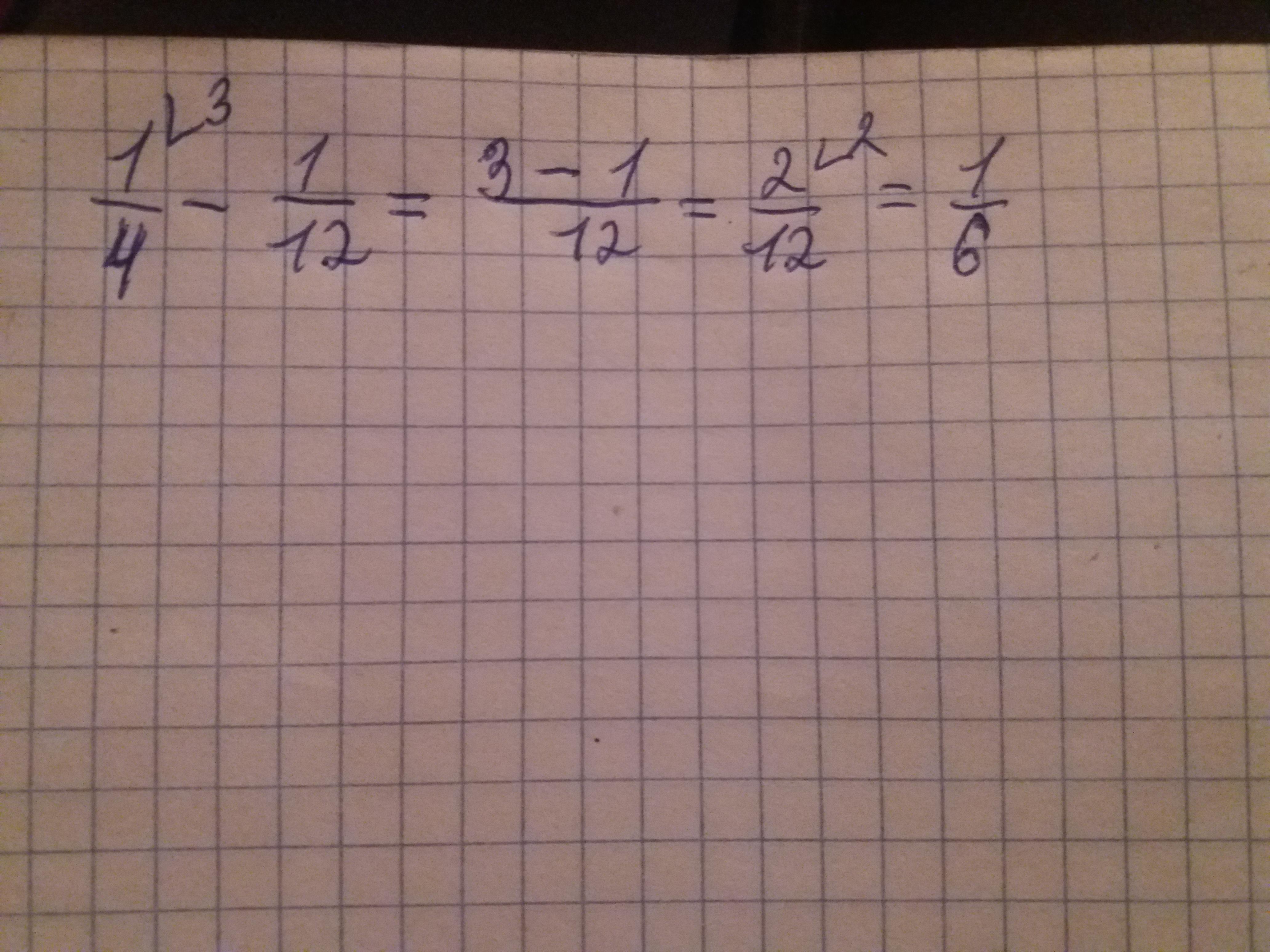 1/4 - 1/12 = 3-1/12 = 2/12 = 1/6