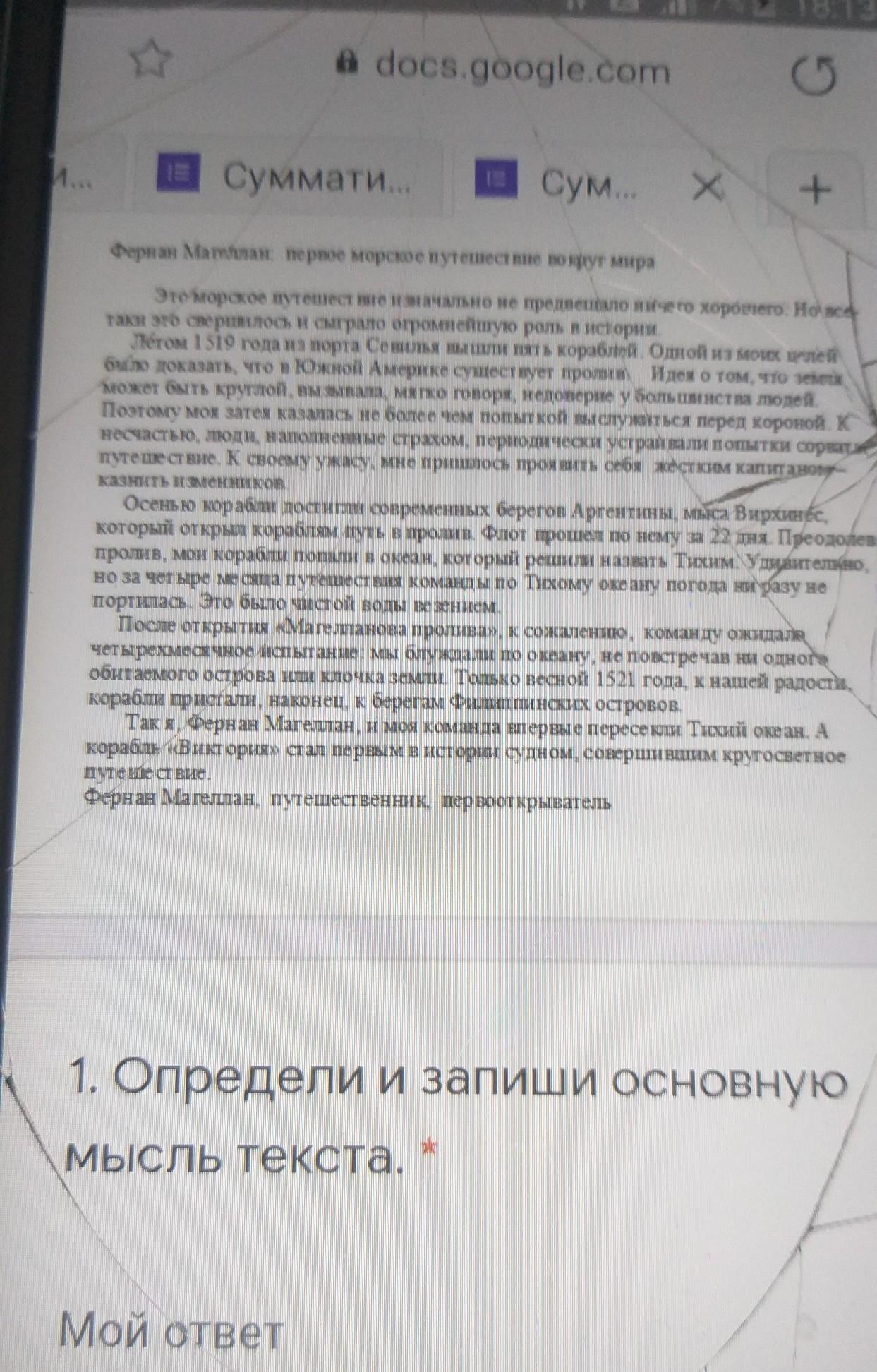 Основная мысль рассказать нам о кругосветном путешествии Фернана Маггелана