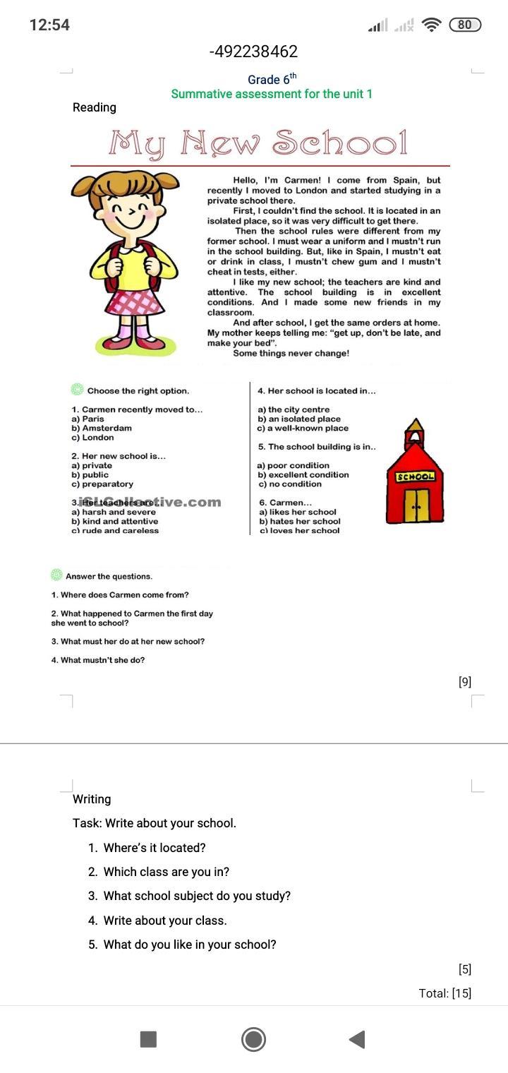 Writing здесь нужно написать сочинение про свою школу.