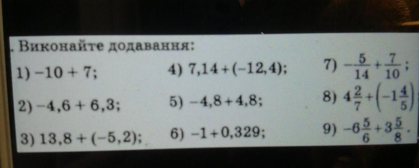 1)-3 2) 2,6 3) 8,6 4),5,36 5) не решается получается 0 6)0,671 7)
