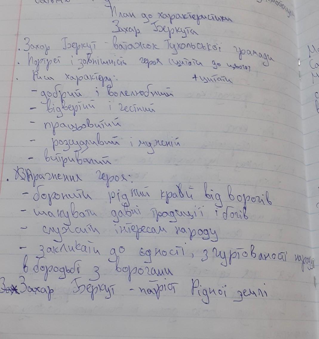 Риси характеру: мудрість, чесність, незламність, мужність, патріотизм, непідкупність.