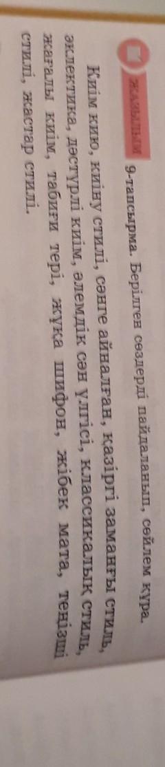 Дәстүрлі киімдерді кию - салт-дәстүрді құрметтеу. Әр адамның киіну стилі болады. Заман тадабына сай киімдерді- қазіргі заманғы ситиліге жатқызуға болады. Үлкендер классикалық киімдерді киеді. Жібек мата- өте бағалы мата. Жастар стилі әртүрлі, әрдайым өзгеріп отырады.