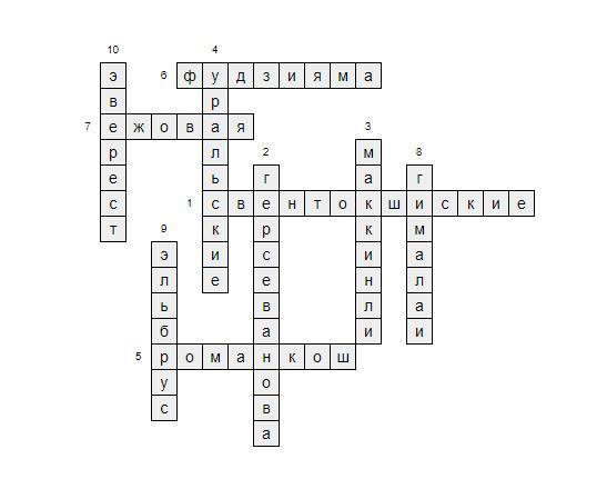 //Здравствуйте, помогите создать кроссворд по теме "горы":)//