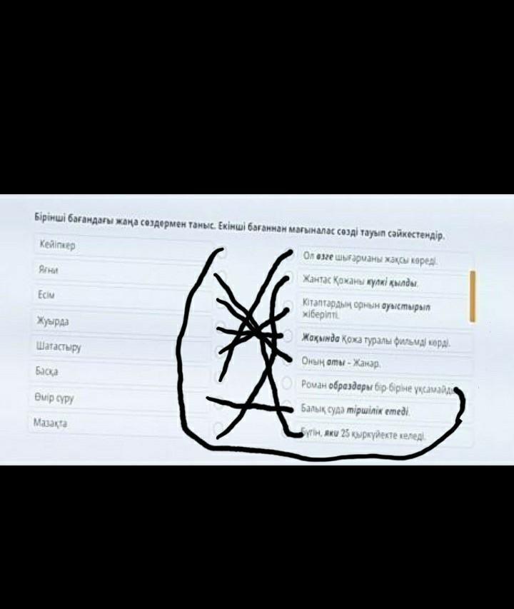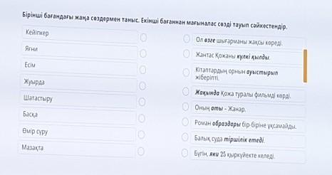 Бірінші бағандағы жаңа сөздермен таныс. Екінші бағаннан мағыналас сөзді тауып сәйкестендір.