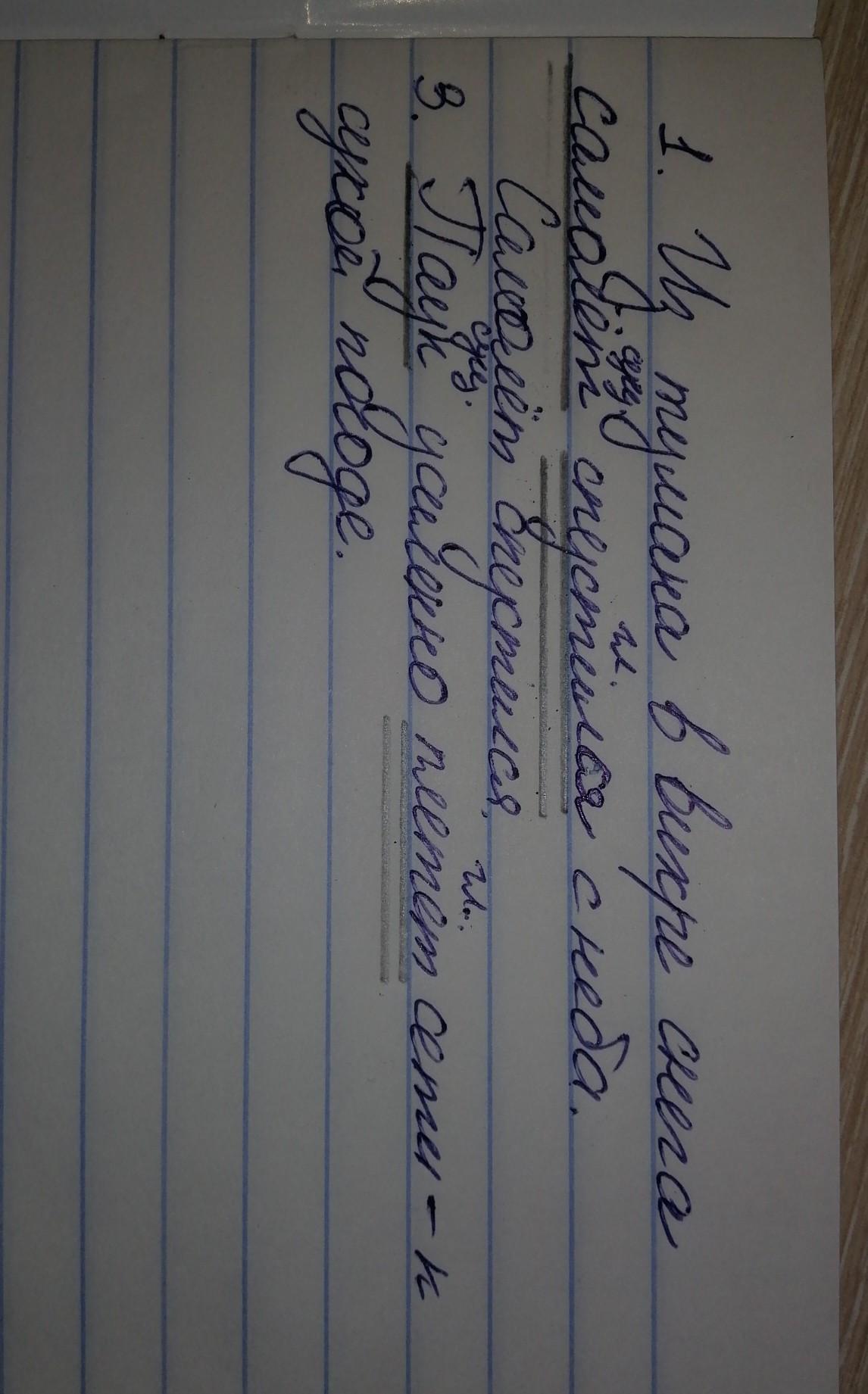 Из первого предложения выпиши словосочетания. Подчеркни в первом и третьем предложениях главные члены.