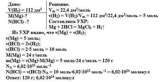 при взаимодействии при взаимодействии магния с избытком соляной кислоты выделился водород объёмом 112 дм кубических.