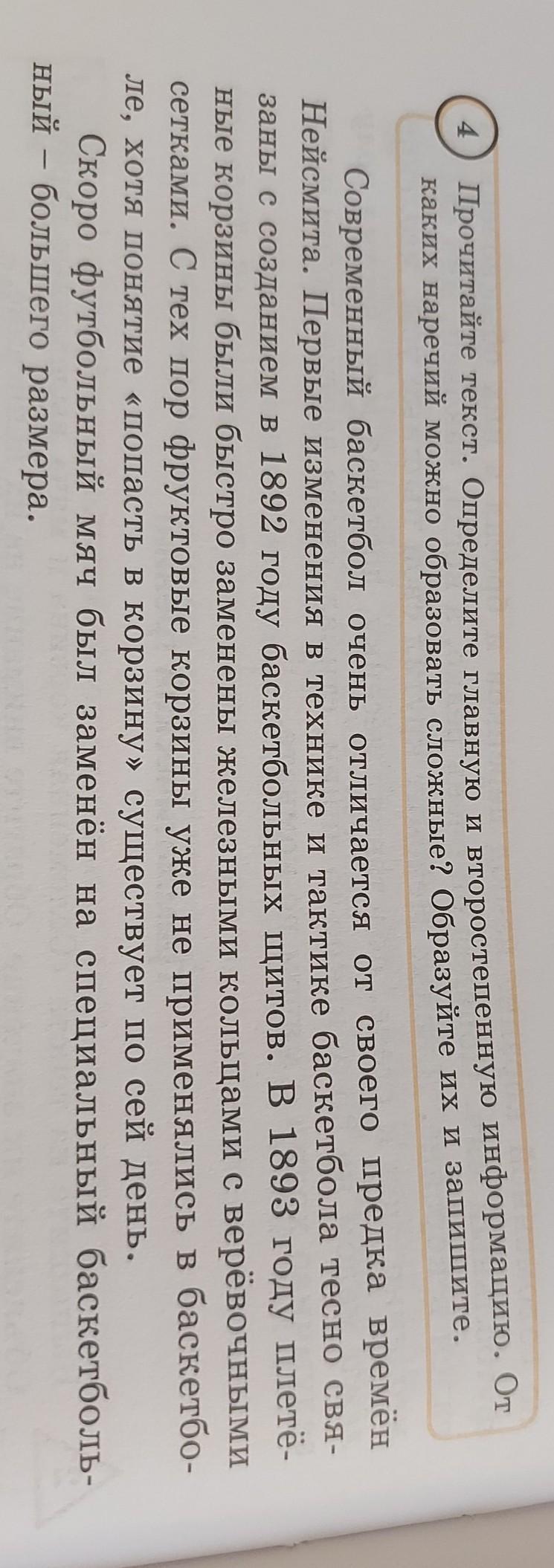Наречие:Скоро футбольный мяч был заменён на специальный баскетбольный -большего размера