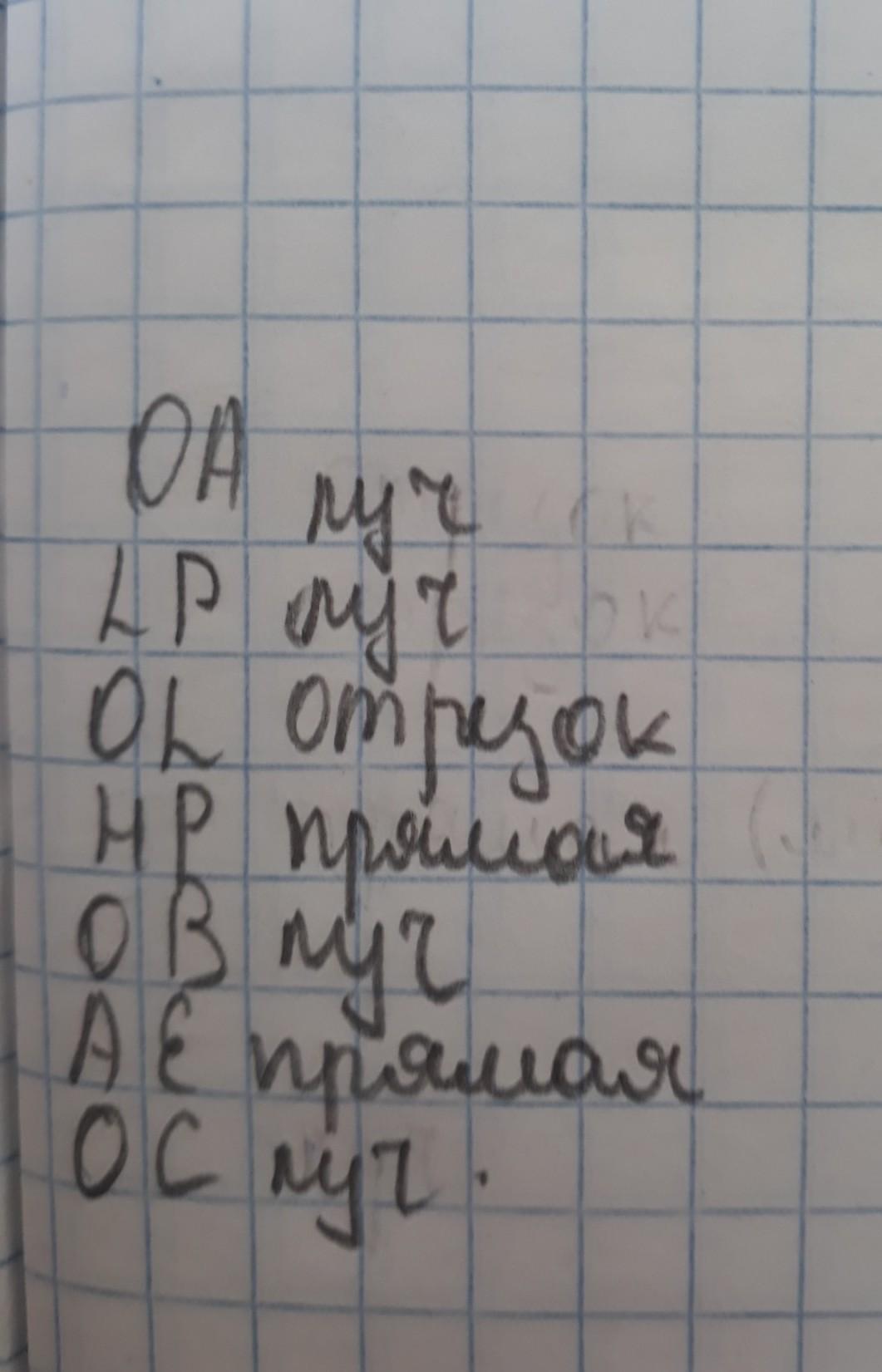 1. Укажите названия следующих элементов на рисунке (прямая, луч, отрезок):