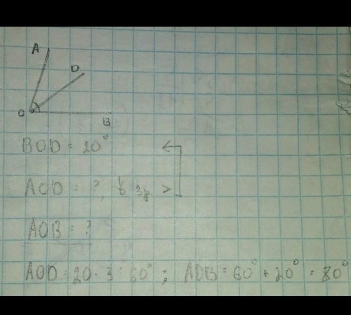 с)найдите величину угла AOB, еслиZAOD = 15°, ZDOB в 4 раза больше AOD.