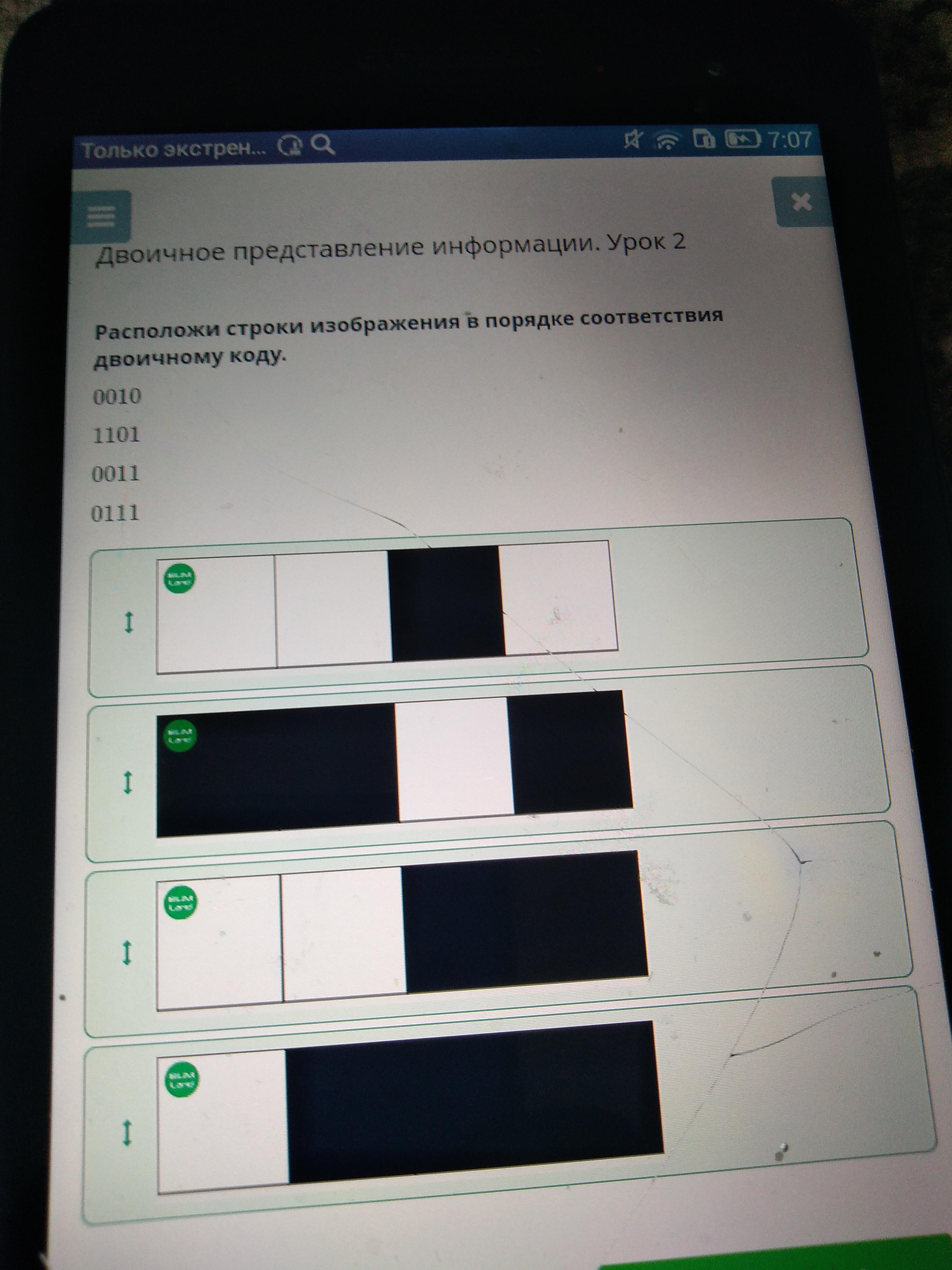 Расположи строки изображения в порядке соответствия двоичному коду.помогите 10 БАЛЛОВ