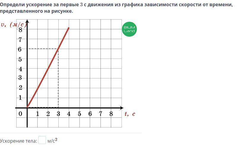 Определи ускорение за первые 3 с движения из графика зависимости скорости от времени, представленного на рисунке. Ускорение тела: м/с2